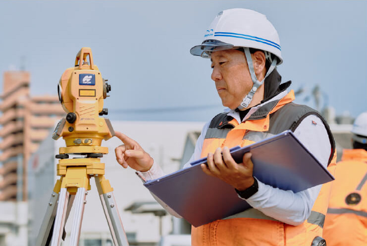 道路などの土木構造物の整備、横断歩道・ガードレール・道路標識などの交通安全施設の整備、橋などの補修、災害復旧など、土木に関わる仕事を幅広く展開しています。